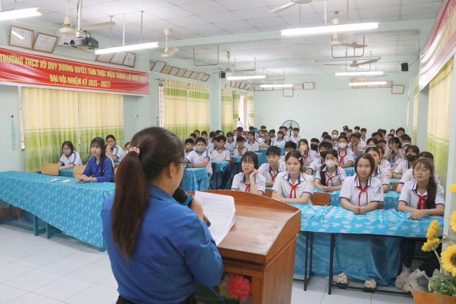 Sáng 22/9 Chi Đoàn trường THCS Võ Duy Dương phối hợp cùng Đoàn TNCS Hồ Chí Minh Phường Kiến Tường tổ chức Chương trình kỷ niệm 60 năm ngày Bác Hồ và Bác Tôn gửi thư cho thiếu nhi Trường Hoàng Lê Kha (Tây Ninh) và tất cả các cháu miền Nam (25/9/1965 – 25/9/2025).
