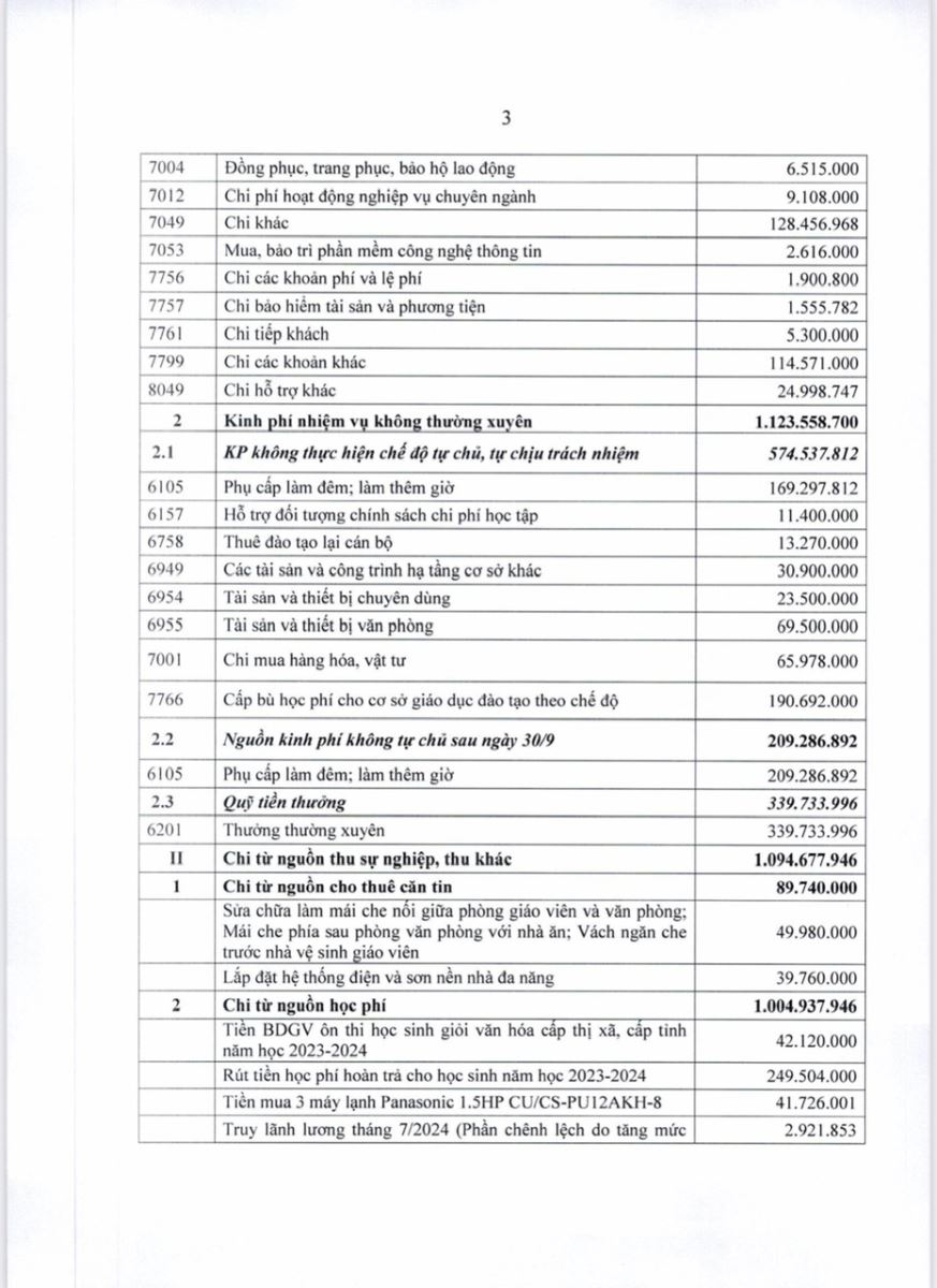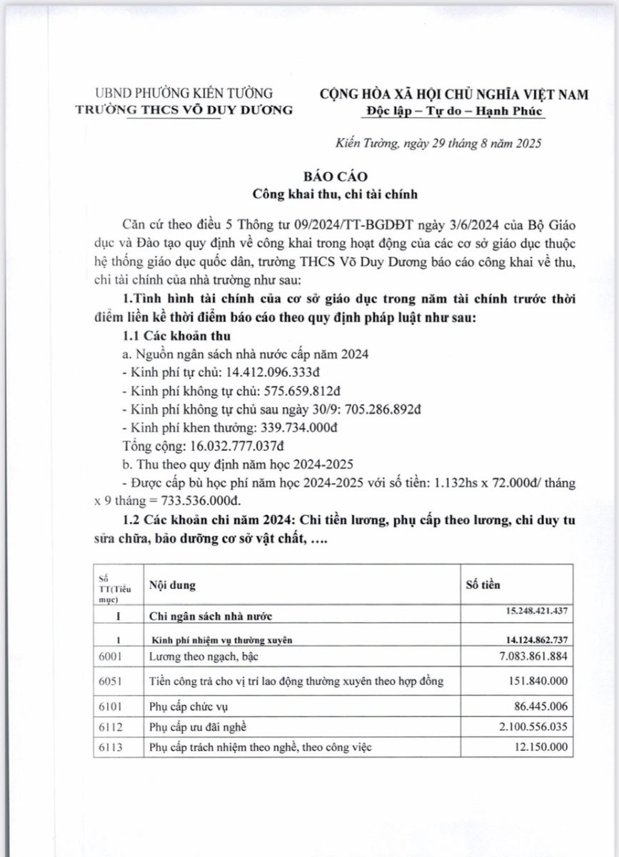 BÁO CÁO CÔNG KHAI THU CHI TÀI CHÍNH